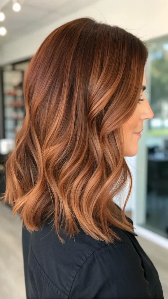 If you want that soft “sunlit saddle brown” look, go for a warm copper balayage brunette. The copper tones blend seamlessly into a chocolate base for a lived-in finish that screams salon luxury.