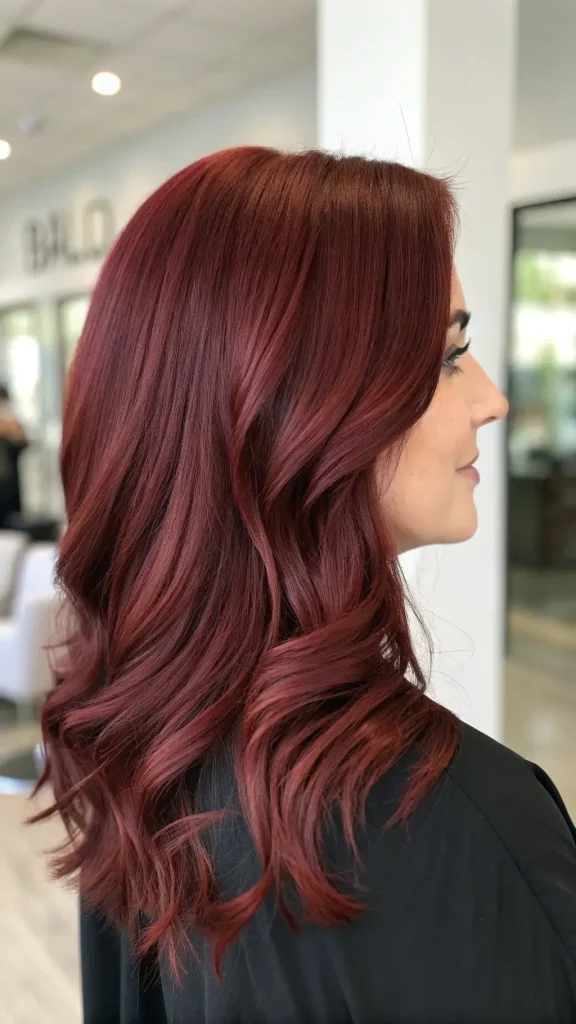 Sometimes it’s not about the shade but about the finish. A glossy burgundy hair color catches the light and gives your locks an ultra-luxe salon look. Ask your stylist for a high-shine glaze to really make it pop. This style is perfect for special occasions, weddings, or whenever you feel like outshining literally everyone.